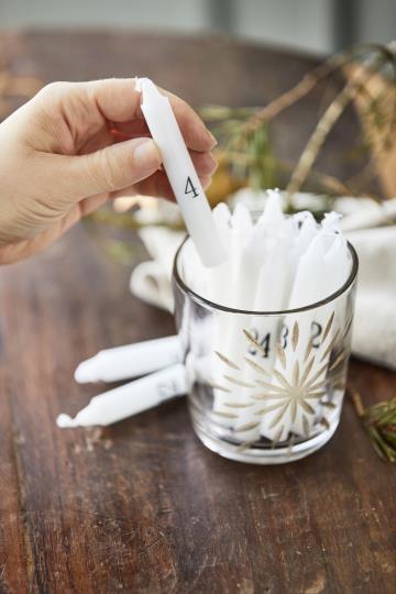 Dünne Kerzen 1-24 weiss mit schwarzen Zahlen