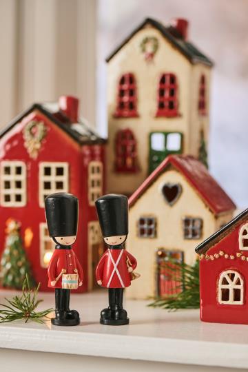 Dieses liebevoll gestaltete Gardisten-Paar ist die perfekte Weihnachtsdekoration, die Dein Zuhause festlichen Charme verleiht. Mit detailreicher Verarbeitung und klassischem Design bringt es eine traditionelle und zugleich verspielte Atmosphäre in jeden Raum. Ideal zum Platzieren auf Kaminsimsen, Regalen oder als Teil eines festlichen Arrangements, sorgt dieses Deko-Paar für eine warme und einladende Stimmung während der Feiertage.