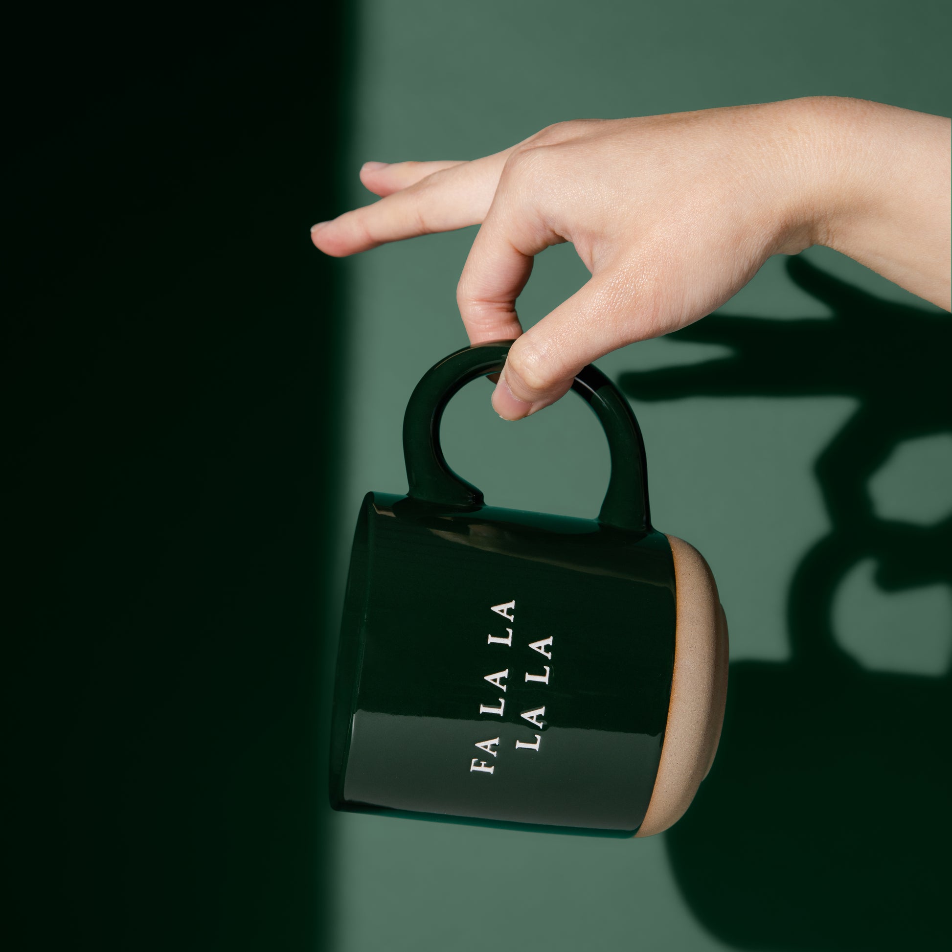 Der Kaffeebecher ist aus grünem Steinzeug. Genau das richtige für den Kakao vor dem Kamin, oder als Geschenk.