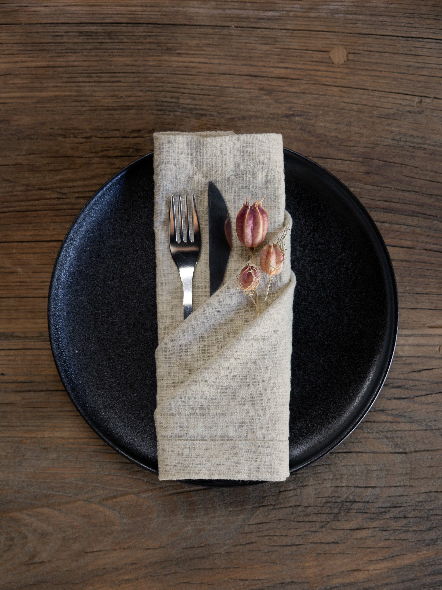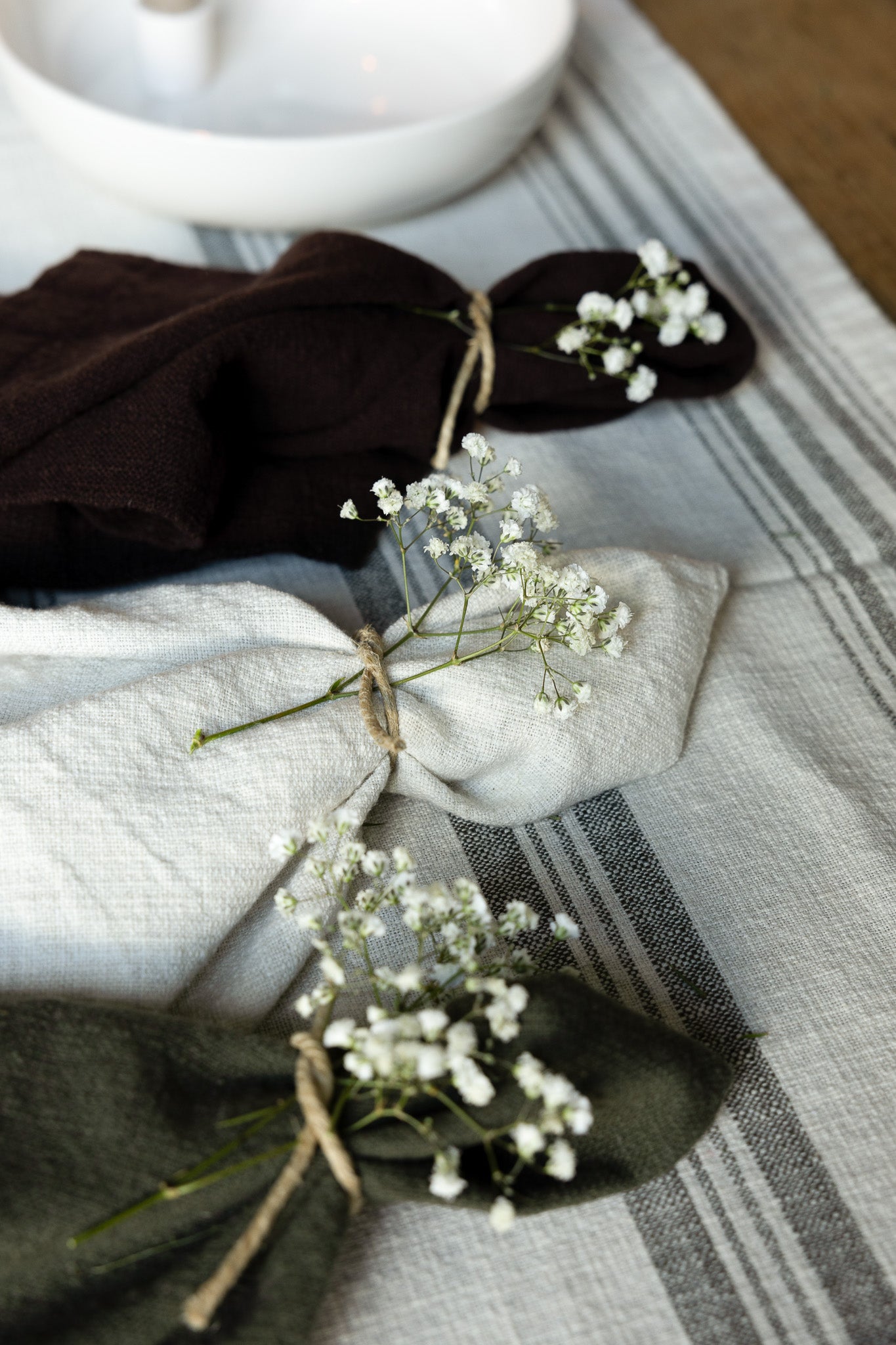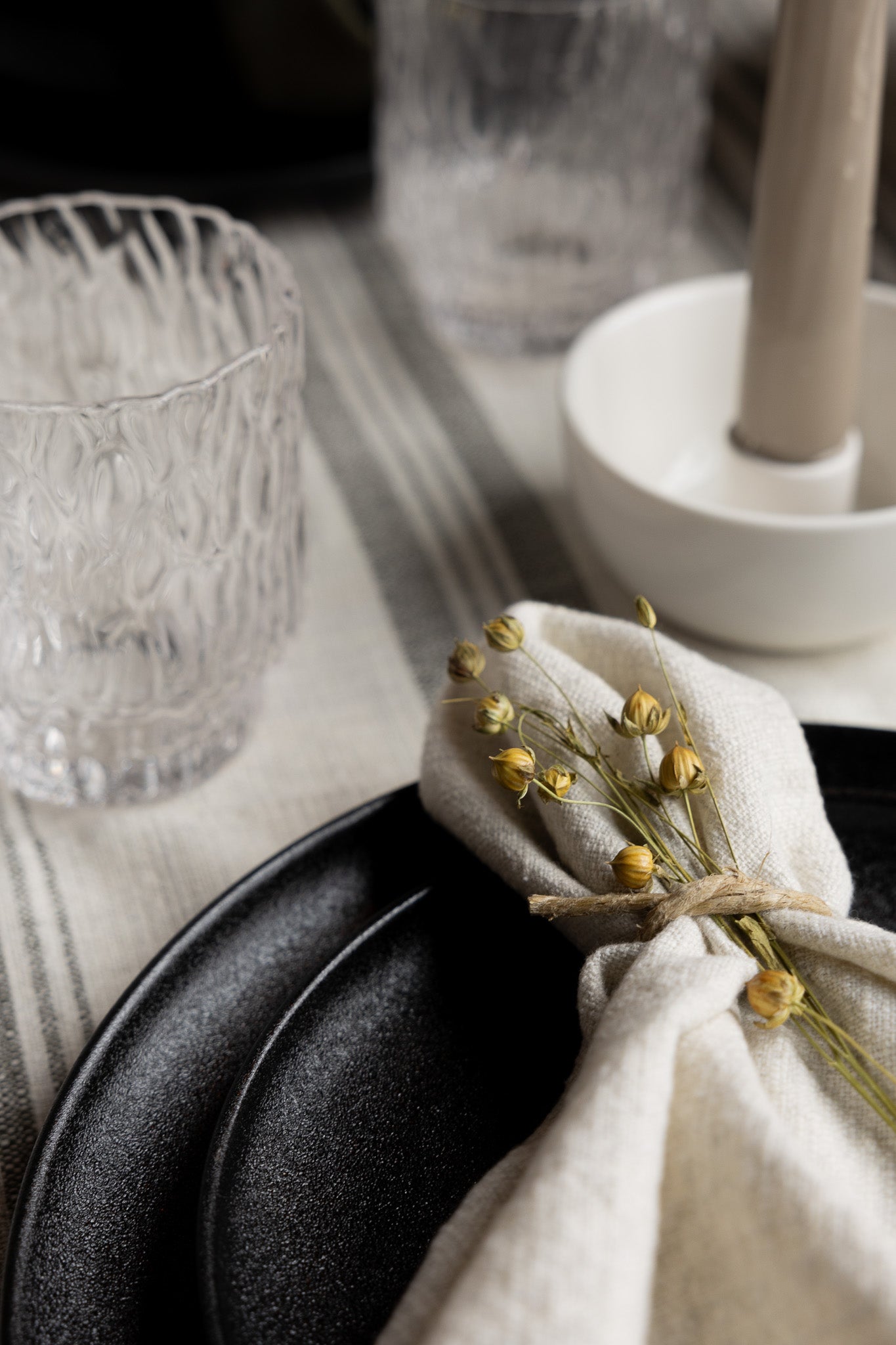 Serviette aus sorgfältig ausgewähltem recyceltem Textil, geeignet für alle Anlässe, sowohl festlich als auch alltagstauglich.