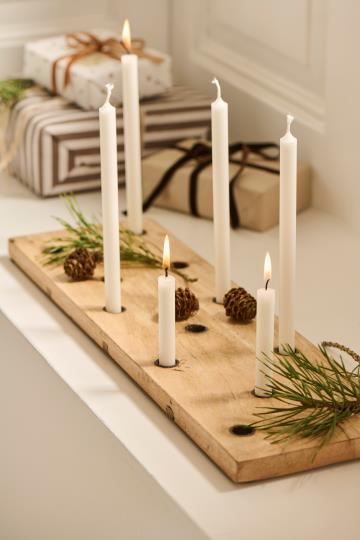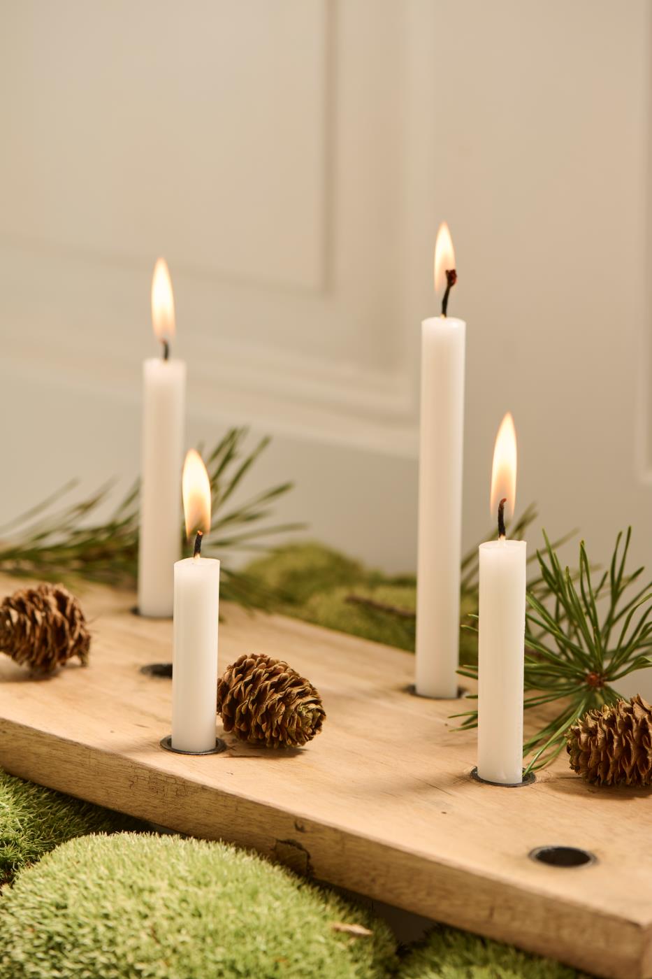 Der Kerzenhalter „Kerzenbrett UNIKA“ von Ib Laursen bietet Platz für 13 Kerzen mit einem Durchmesser von etwa 1,3 cm. Als Teil der UNIKA-Serie besticht jeder Kerzenhalter durch seinen individuellen, einzigartigen Charakter. Bitte beachten Sie, dass die Kerzen vor dem vollständigen Abbrennen gelöscht werden sollten, da der Metalleinsatz die gesamte Holzplatte durchzieht und die Unterseite sehr heiß werden kann. Dieses Design verbindet natürliche Materialien mit funktionaler Sicherheit und sorgt für eine stilvolle Atmosphäre in Ihrem Zuhause.