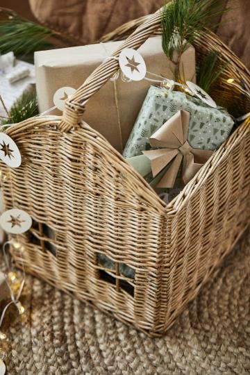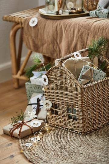 Für Geschenke, Zeitschriften und alles Schöne: das Ib Laursen Korbhaus. Die Kreation erinnert an ein liebevoll gestaltetes Häuschen mitten im Weihnachtsdorf. Kleine Fenster verleihen ihm eine ganz besondere Gemütlichkeit.