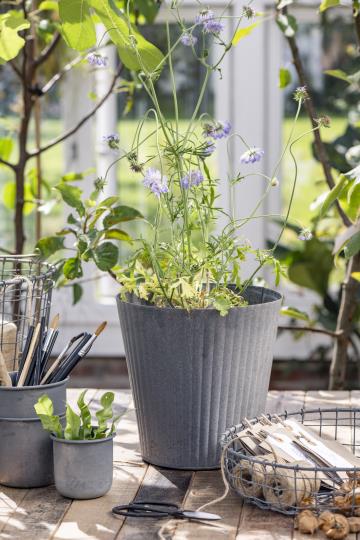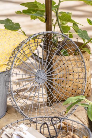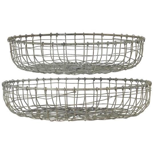 Die Körbe aus Metall kommen als Paar und haben die Maße: H: 8,5  Ø: 32 und H: 8,5  Ø: 35,5