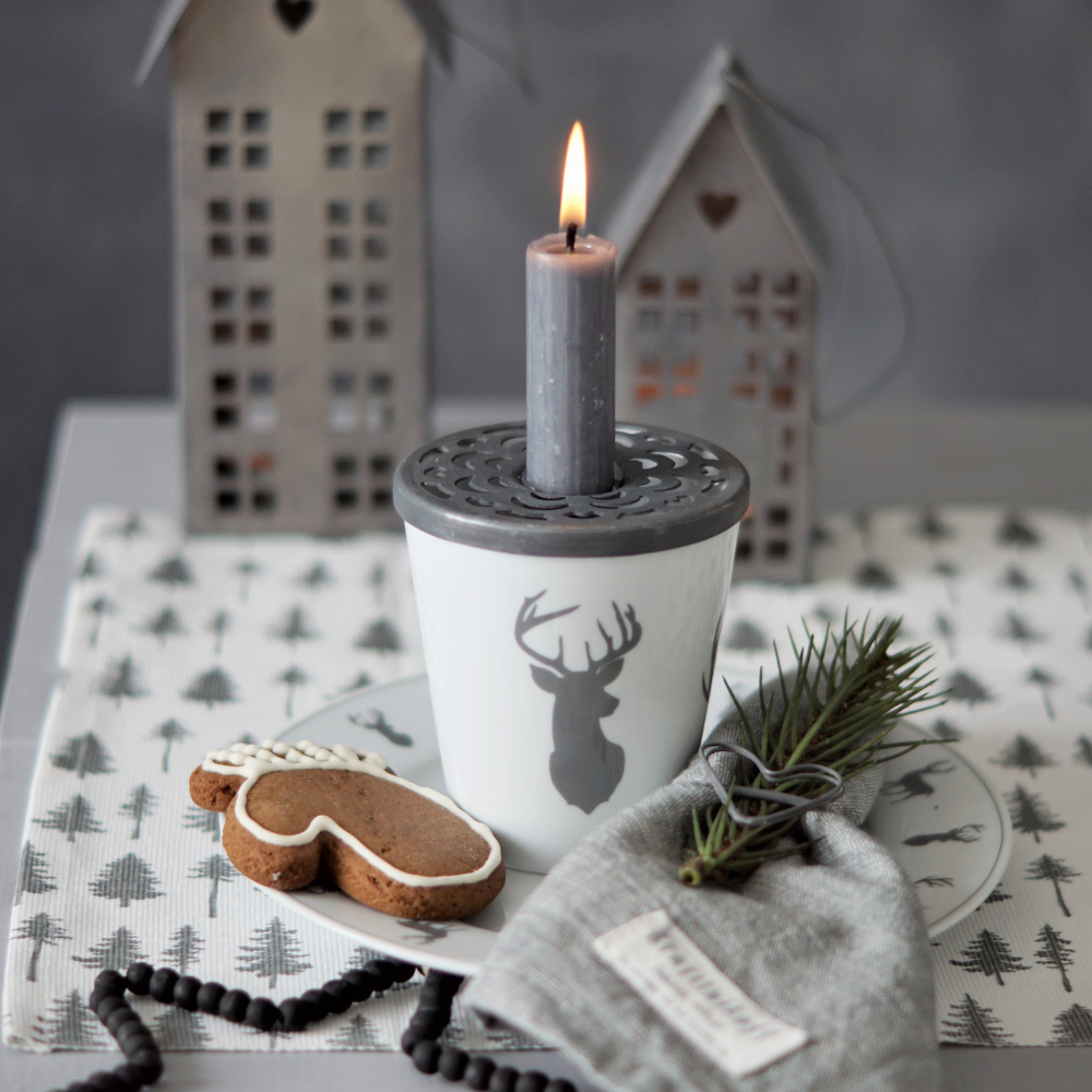 Der Krasinikoff Happy Mug "Winter Lodge Charcoal" sorgt an kalten Wintertagen schnell für wohlige Wärme. Einfach mit heißem Kakao oder Tee füllen und den Becher zum Aufwärmen der Hände nutzen. Sein charmantes Design mit Hirsch- und Geweihmotiven bringt zudem eine gemütliche Lodge-Atmosphäre in Deinem Zuhause. Robust und stilvoll ist dieser Becher der perfekte Begleiter für die kalte Jahreszeit. Mit seiner Größe von ca. 9 x 10 cm hat der Happy Mug ein Fassungsvermögen von 250ml.