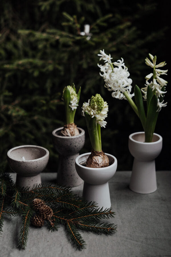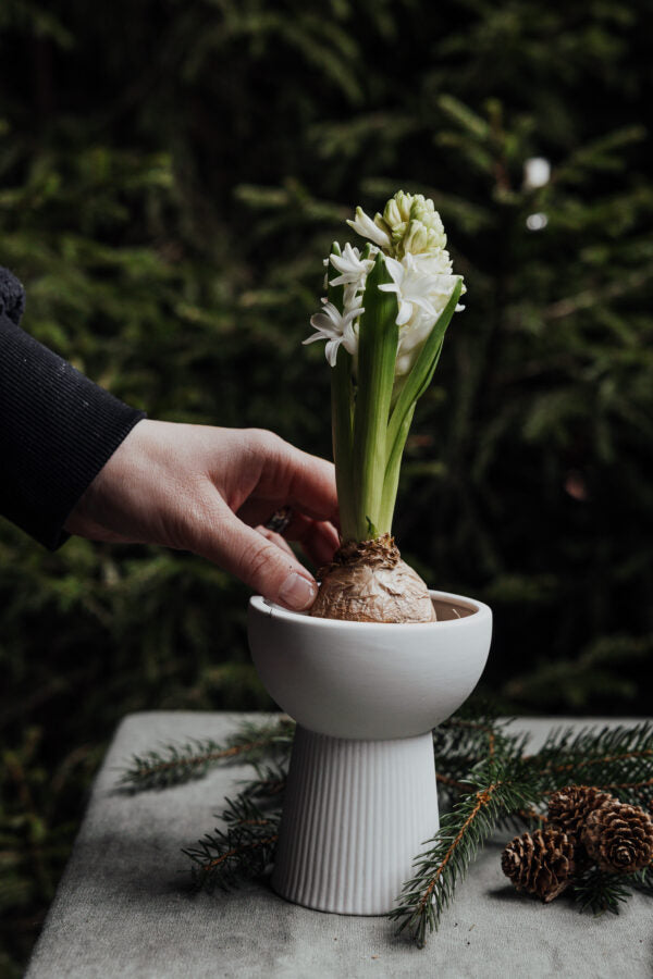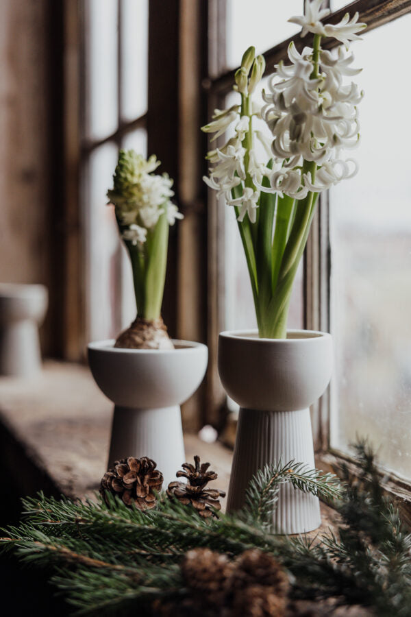 Eine kleine Vase aus mattierter Keramik, perfekt für selbst gepflückte Blumen und Zweige. Sieht in seiner Einfachheit wunderschön aus. Besonders schön für Hyazinthen.