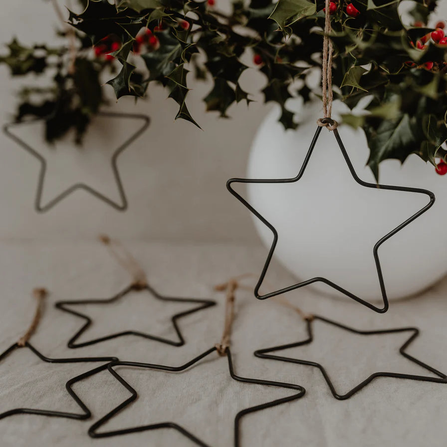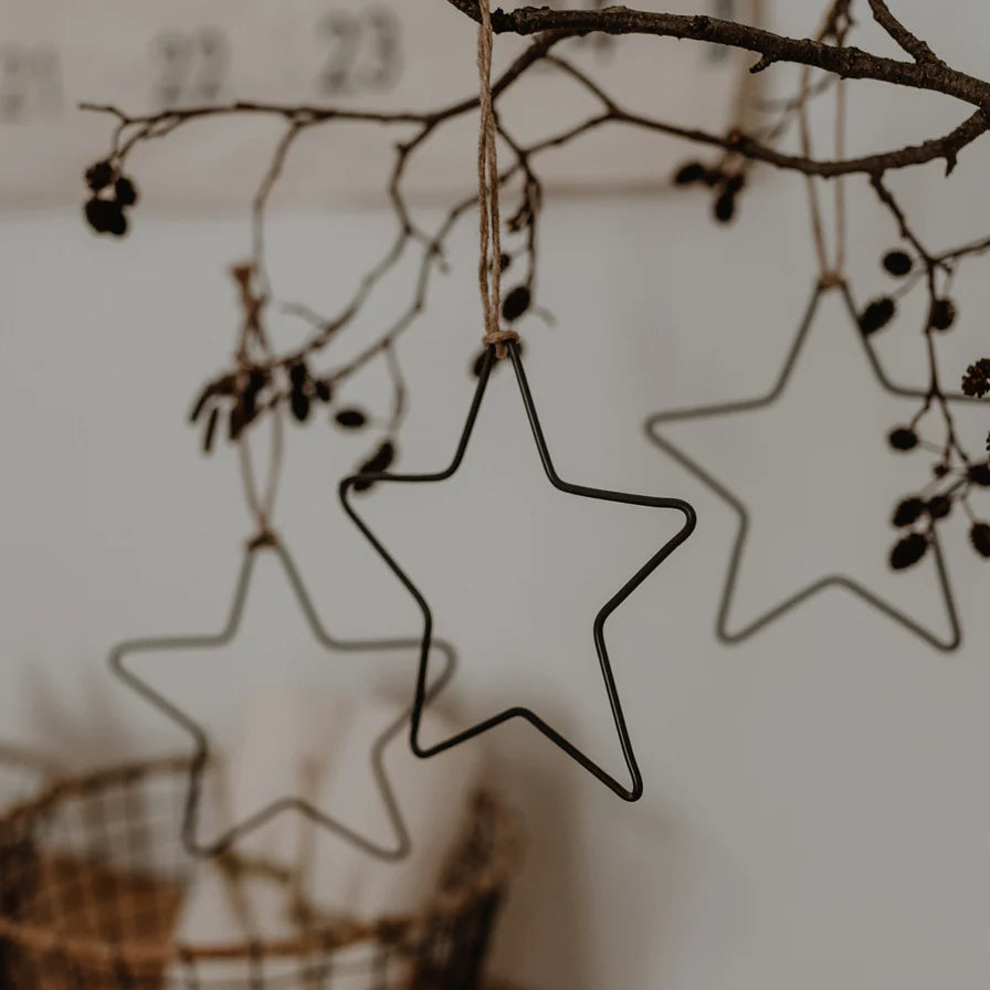 Hast du Lust auf minimalistisch schöne Dekoration - dann werden Dir unsere Metallanhänger Stern richtig gut gefallen! Die Sterne lassen jede Menge Freiraum für individuelle Dekoration und Kreativität. Ihr schlichtes und zeitloses Design passt super in jeden Raum. Jeder Anhänger kommt mit einer kleinen Kordel, sodass sie direkt angehängt werden können. Eine wundervolle Dekoration, welche Du ganz nach Belieben individuell dekorieren kannst. Dekoriert mit ein bisschen Eukalyptus oder tollen Trockenblumen zaubern die kleinen Sterne jedem ein Lächeln ins Gesicht. Auch toll zu Weihnachten, dekoriert mit ein bisschen Tanne. Material: Metall Format: Die einzelnen Anhänger haben ca. die Maße von 12,8 x 12 cm. Merkmale: Set aus 6 Anhängern Inklusive Garn