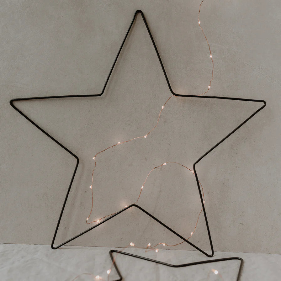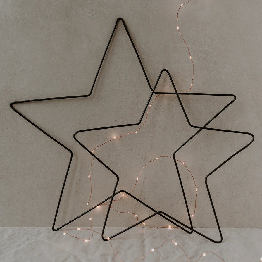 Hast du Lust auf minimalistisch schöne Dekoration, dann werden Dir die 2 Sterne aus Metall gefallen! Sie lassen jede Menge Freiraum für individuelle Dekoration und Kreativität. Das schlichte und zeitlose Design passt super in jeden Raum und macht sich auch im Eingangsbereich super. Dekoriert mit ein bisschen Tanne oder tollen Trockenblumen zaubern die Sterne jedem ein Lächeln ins Gesicht. Eine wundervolle Weihnachtsdekoration, welche Du ganz nach Belieben individuell dekorieren kannst. Material: Metall Maße: Stern 1: ca. 42 x 40 cm Stern 2: ca. 32 x 30 cm