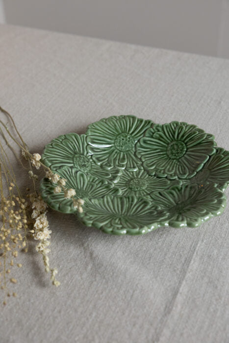 Die grüne Keramikschale „Äng“ von Storefactory verbindet funktionales Design mit einem liebevollen, floralen Motiv. Sie ist ideal, um Snacks oder Obst stilvoll zu servieren und verleiht jedem gedeckten Tisch eine besondere Note. Gleichzeitig eignet sie sich hervorragend als dekoratives Element, das Räume zum Erblühen bringt und für eine natürliche, einladende Atmosphäre sorgt. Ein hochwertiges Accessoire für anspruchsvolles Tafeln und Ambiente.